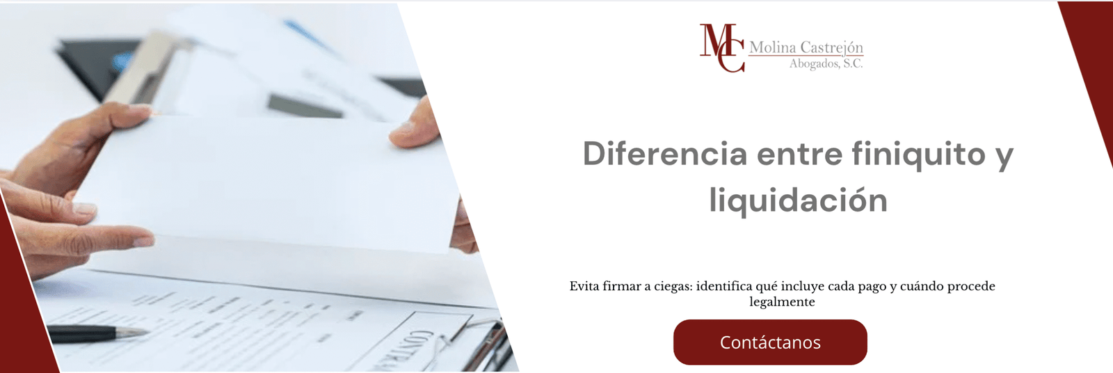 Si estás en proceso de renuncia, despido o negociación de salida, revisar a tiempo puede evitar pérdidas económicas y conflictos largos. En Molina Castrejón otorgamos un análisis legal oportuno que ayuda a validar montos, detectar omisiones y defender tus derechos con fundamento.